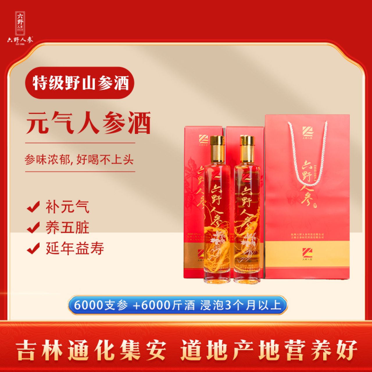六野人参元气人参酒 500ml/瓶 2瓶